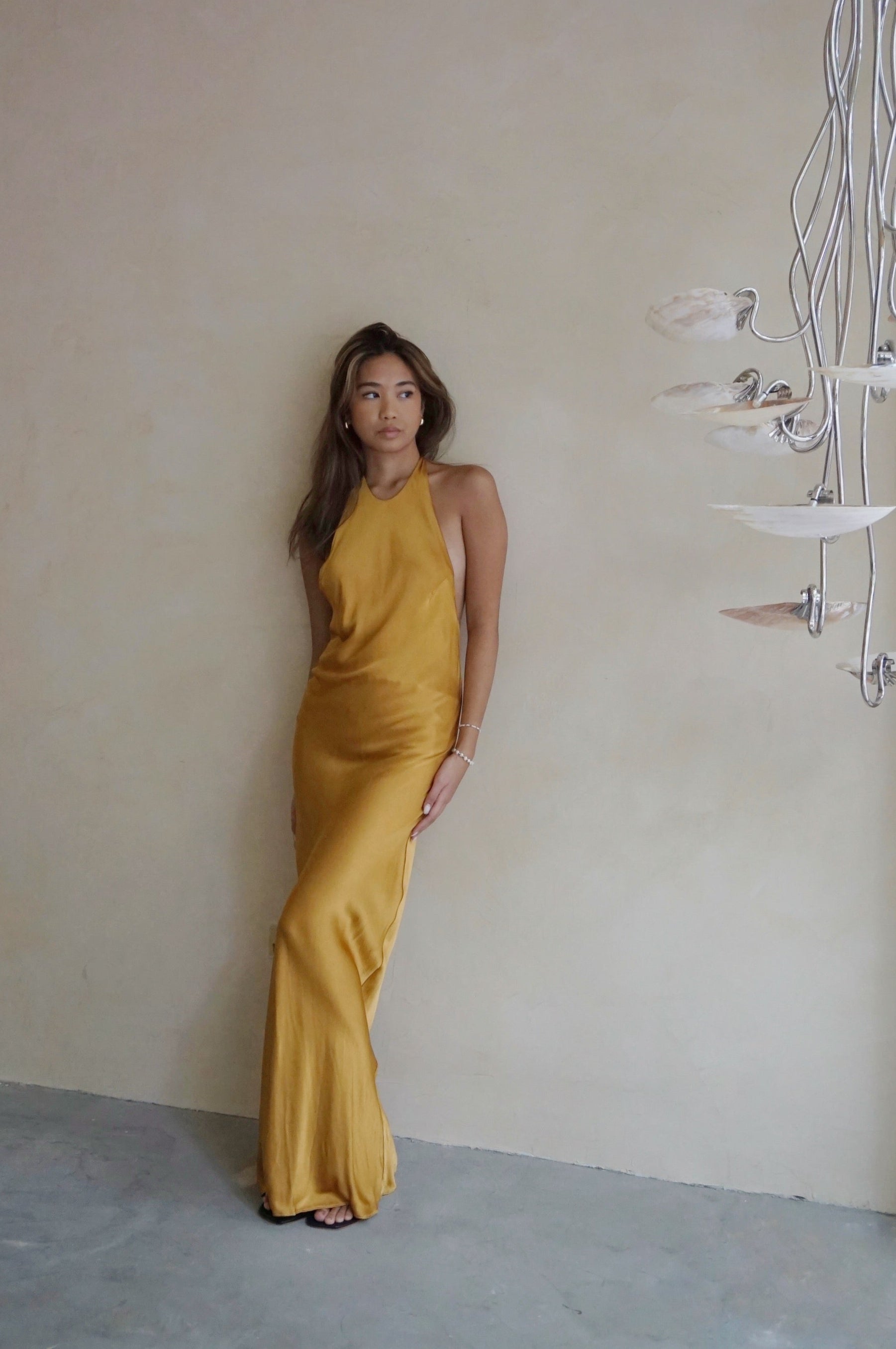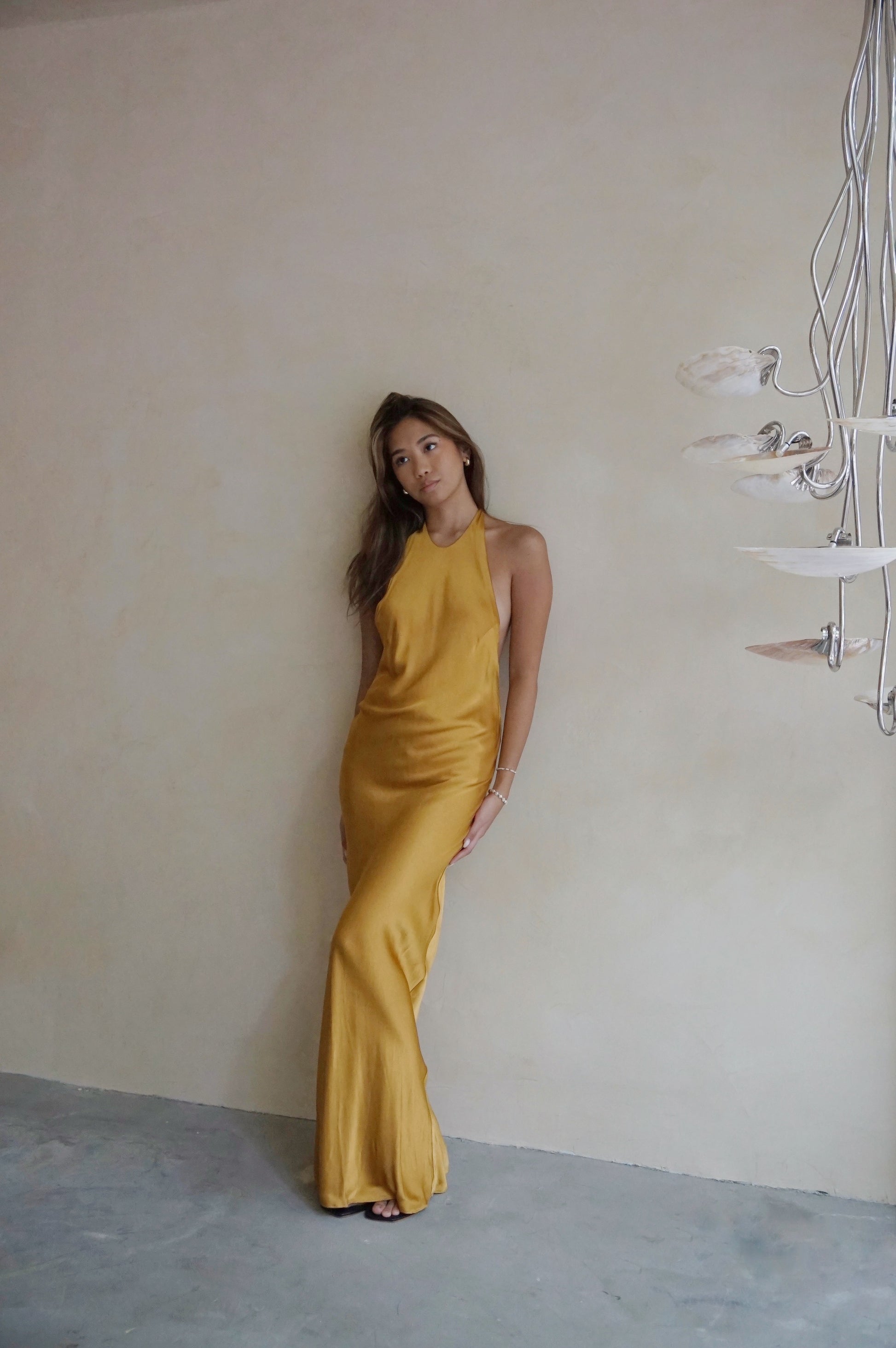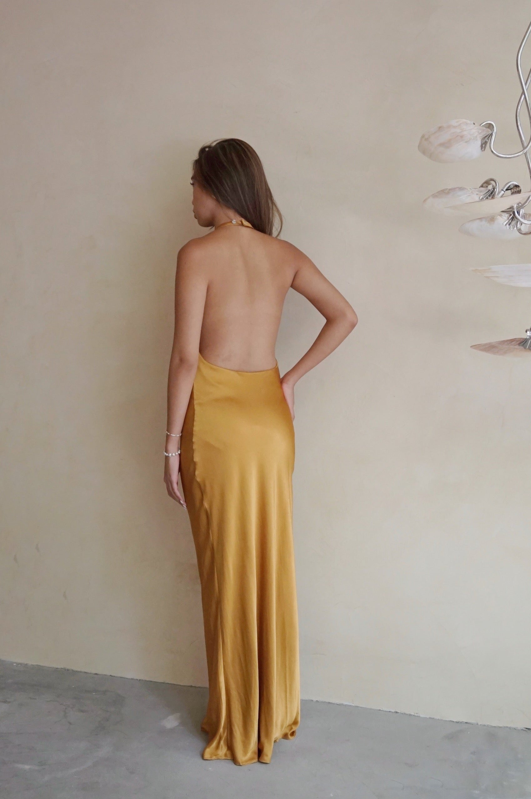 Halter Bias Gown Caramel