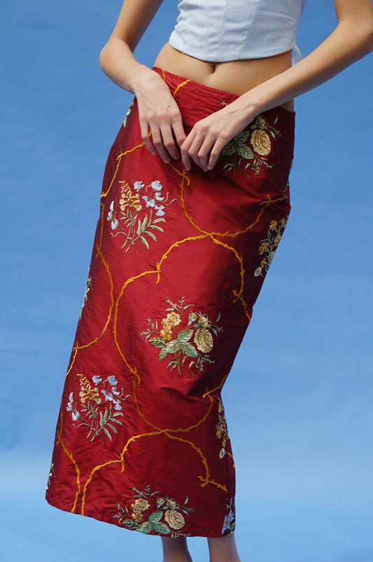 Silk Pencil Skirt Burgundy Bloom