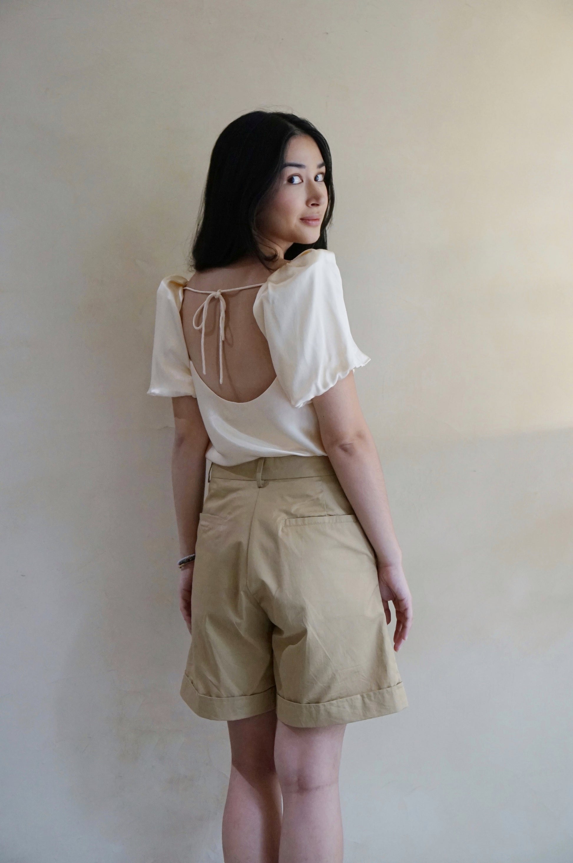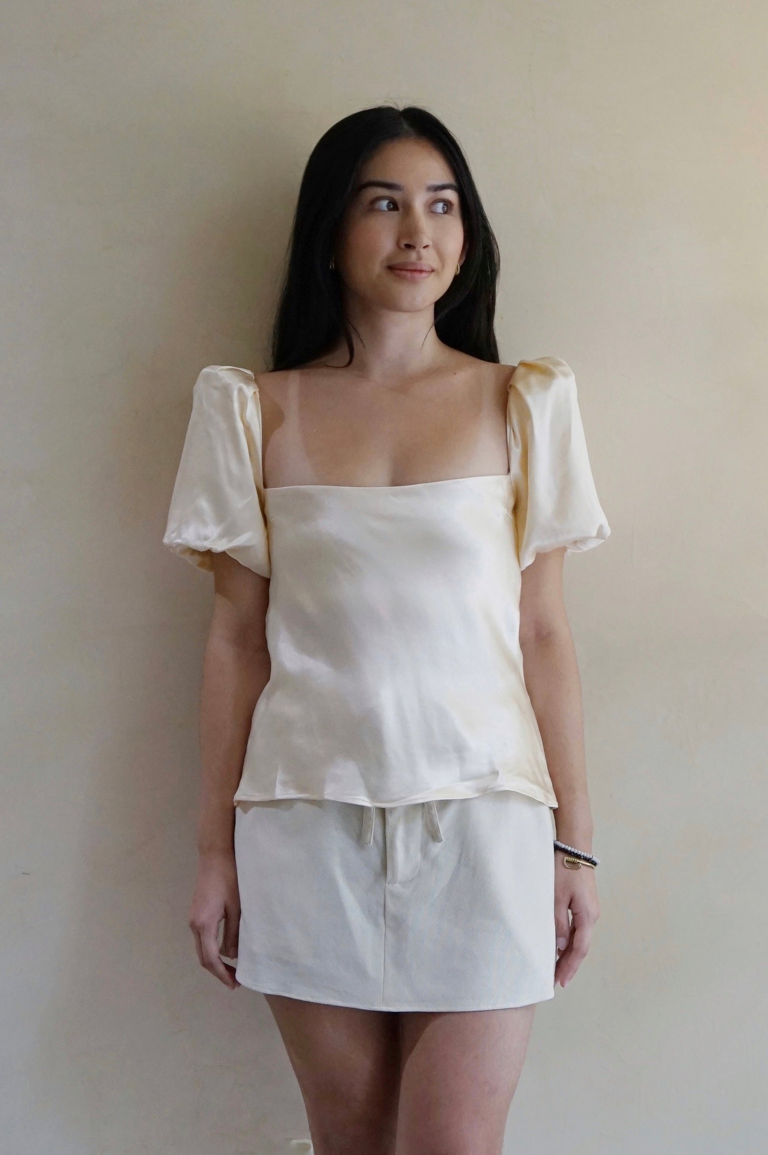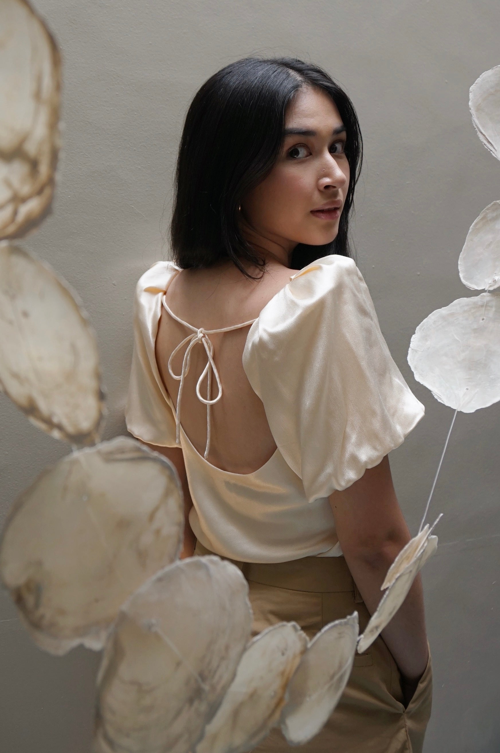 Floaty Filipiniana Terno Top made from Viscose Satin. Bias cut with a low scoop back.