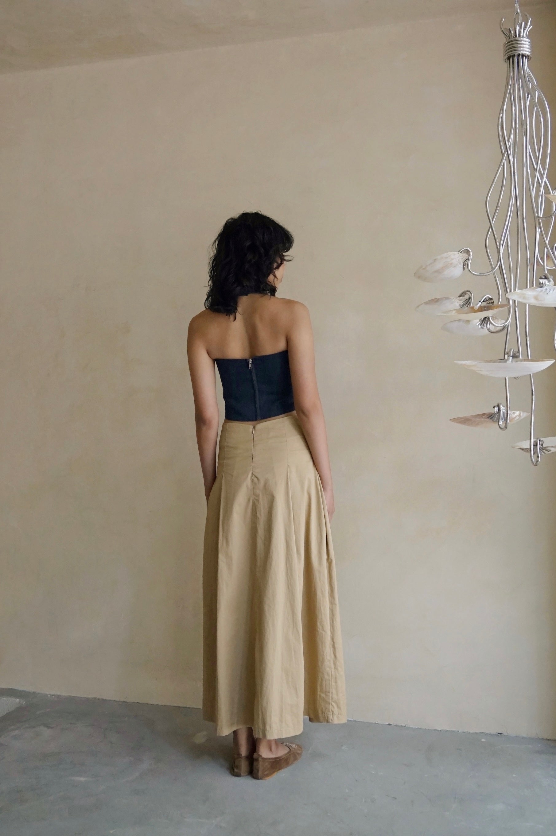 Structured tube top with side panel adjustable halter strap made from Pure Linen.