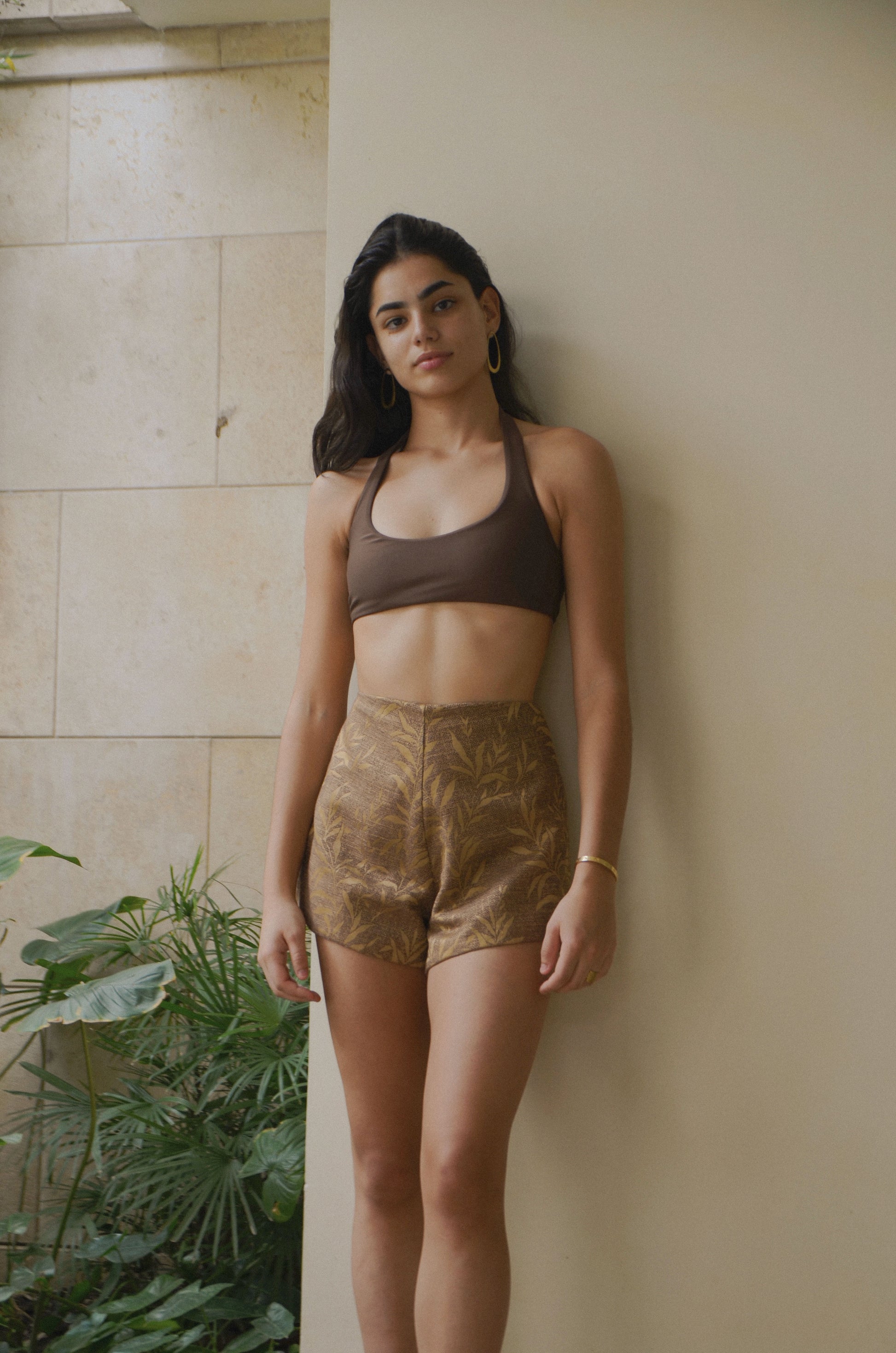 Signature 'Melfi' scoop neckline reissued as a halter neck high waist swimsuit. Seamless and self lined with allowance for pad inserts. Comes with Áraw Swim canvas pouch.