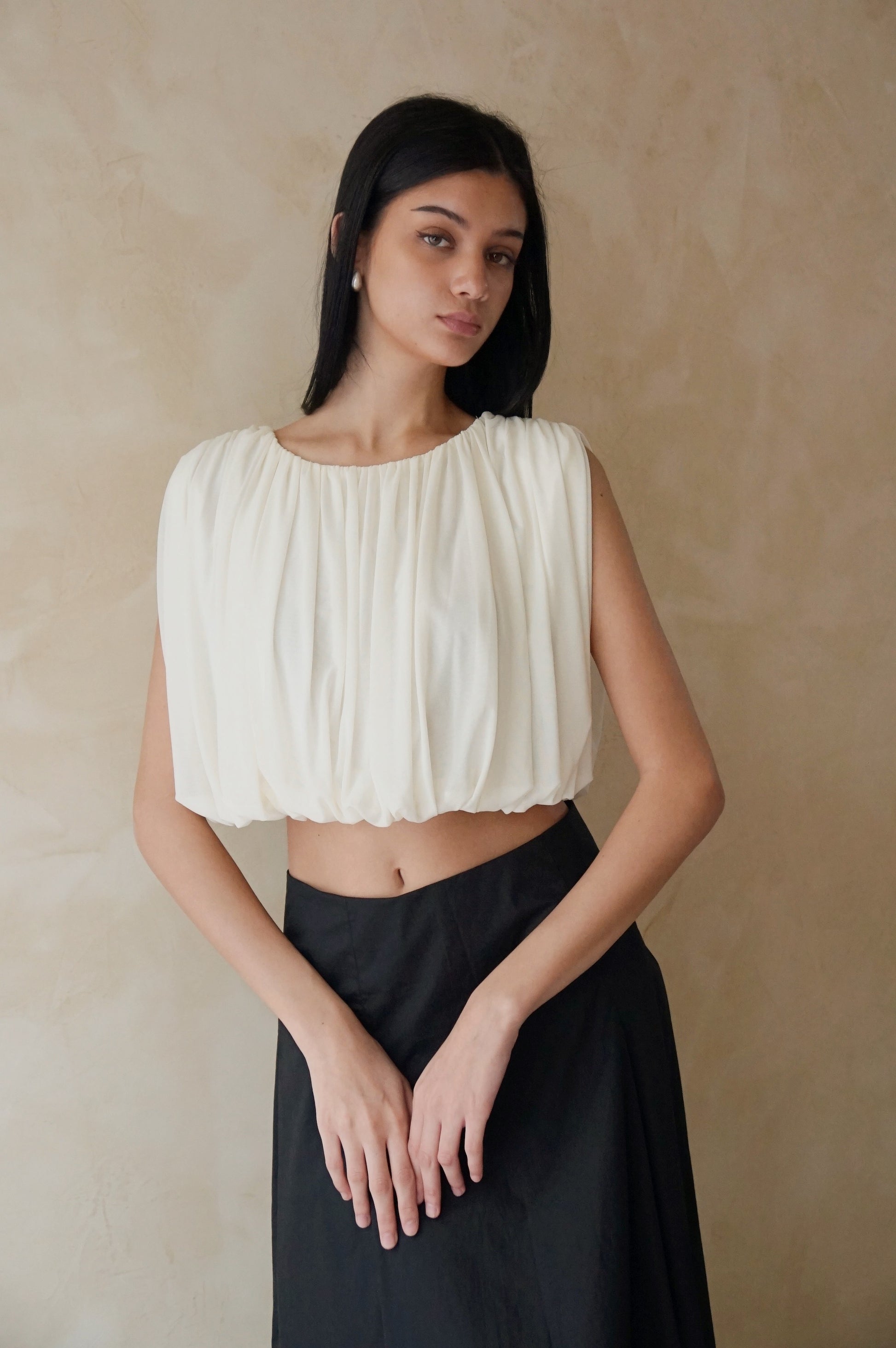 Made with a soft mesh fabric and features a draped design. The top is also lined for added comfort and a sleek appearance. Perfect for casual or dressy occasions, this top offers a lightweight and elegant addition to your wardrobe.