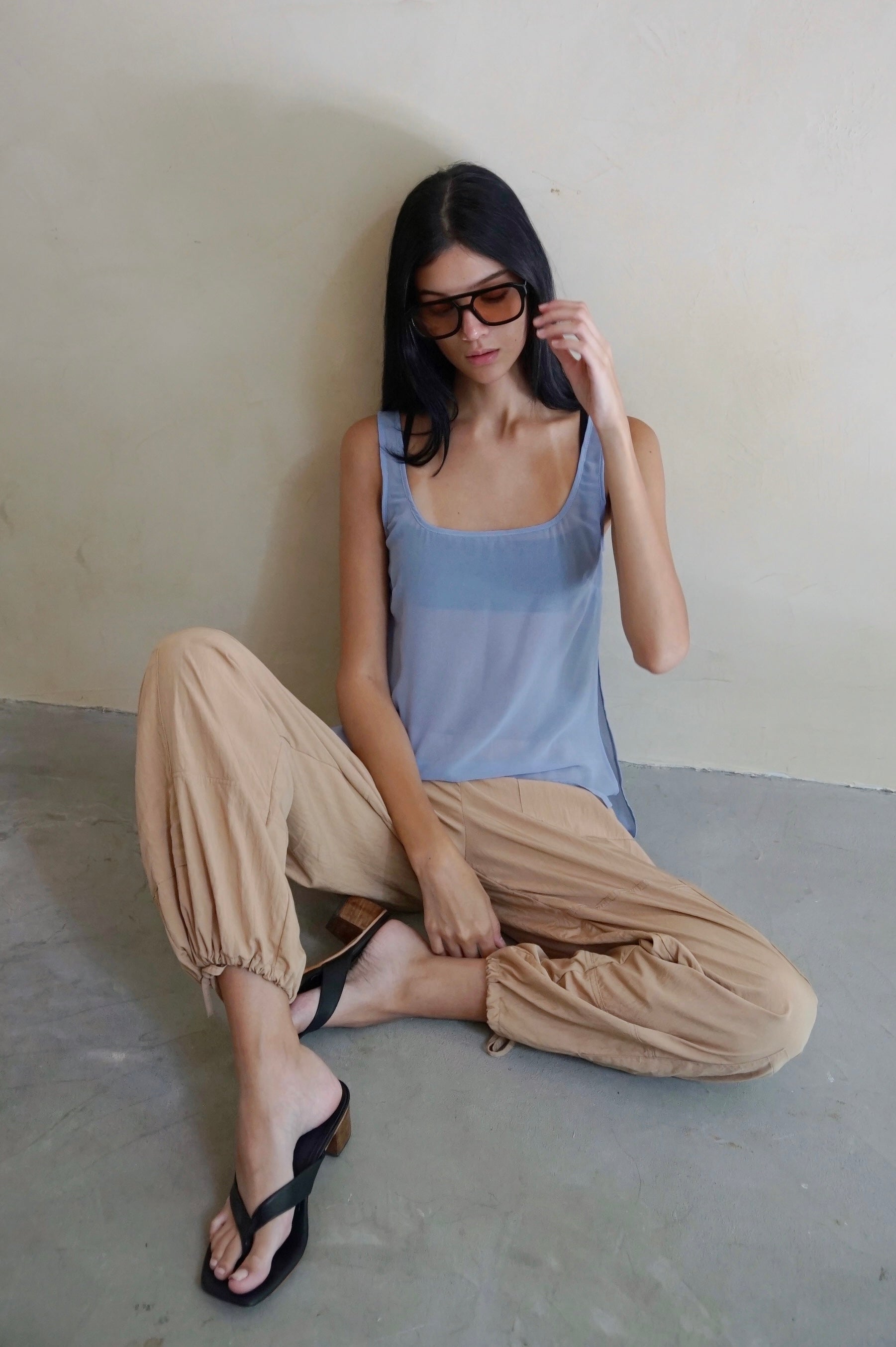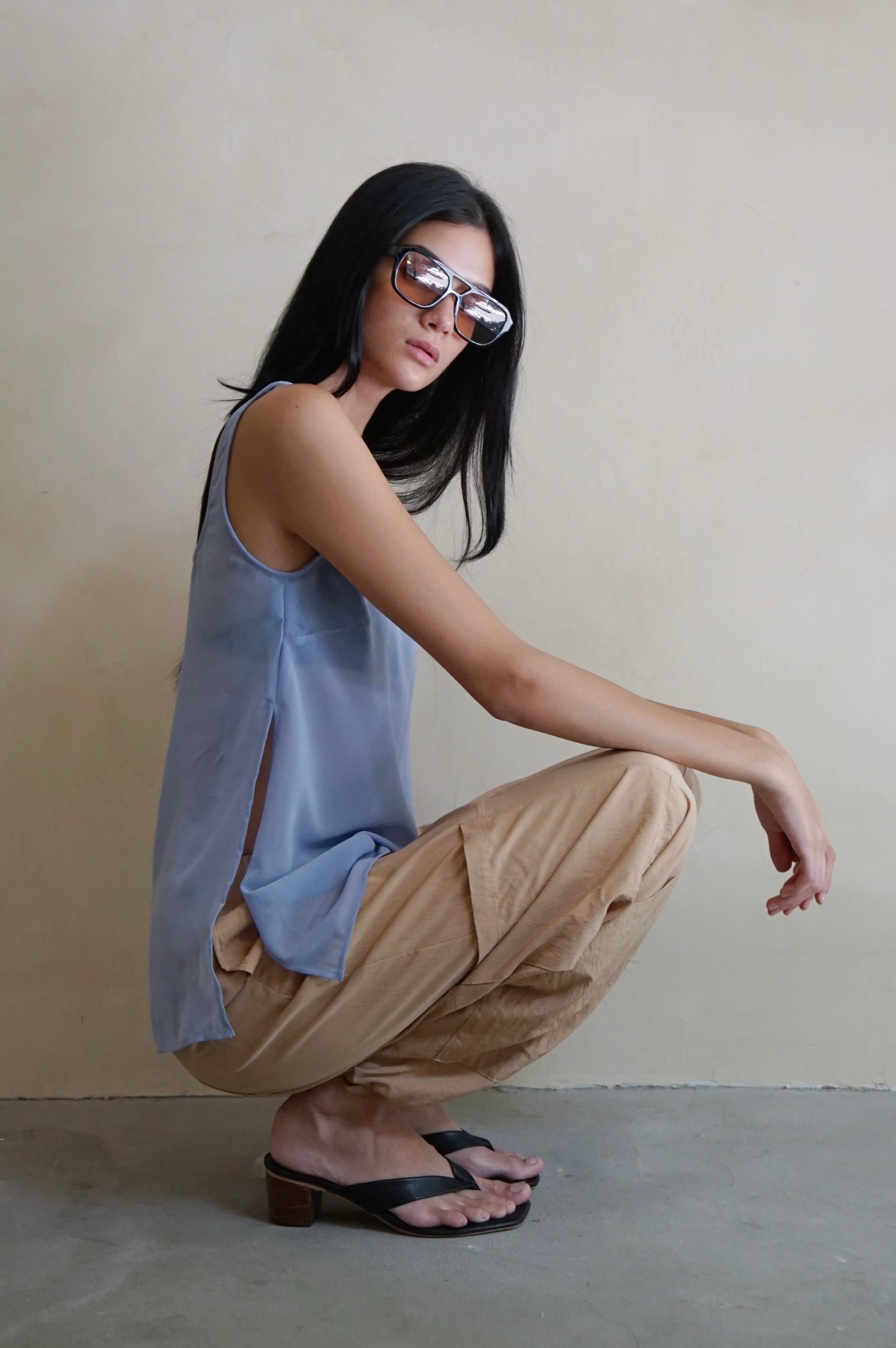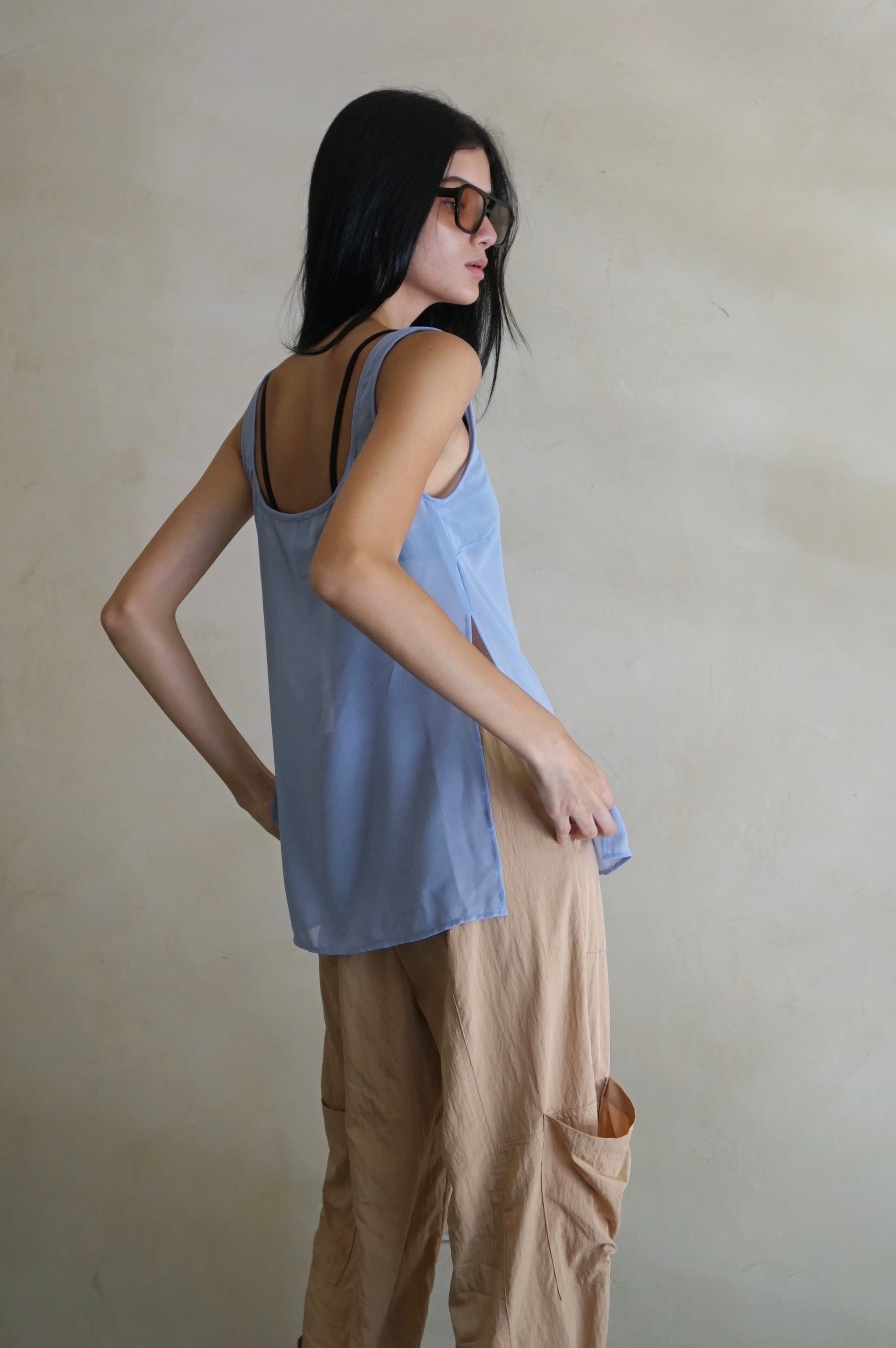 Square Neck Sheer Tunic Top Periwinkle