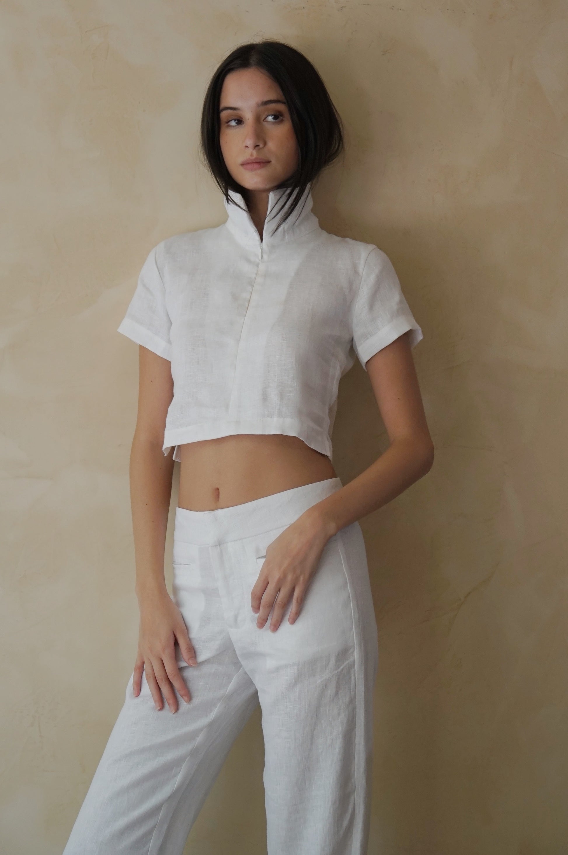 Retro inspired box fit cropped polo top with half zipper.
