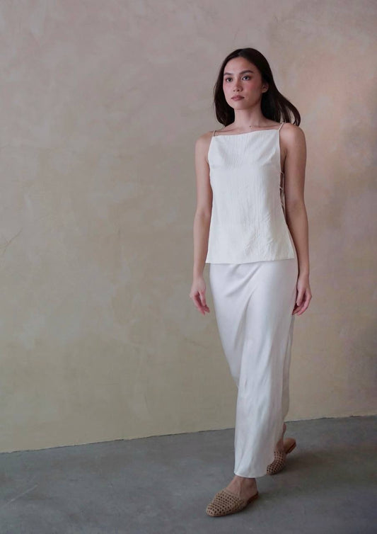 Scallop Tie Back Top Ivory Silk (pre-order)